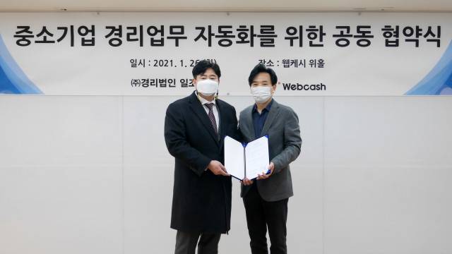 B2B 핀테크 기업 웹케시(대표 강원주)는 경리 업무 아웃소싱 전문 기업 경리법인 일조(대표 최경환)와 경리 업무 자동화를 위한 전략적 업무 제휴 협약을 체결했다고 27일 밝혔다.