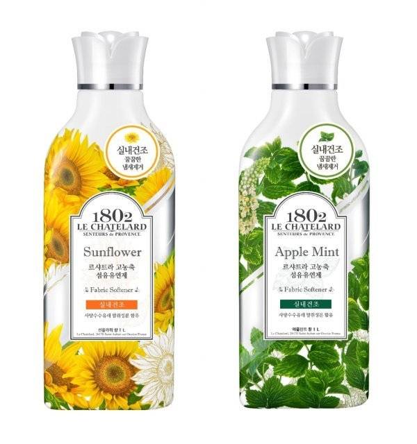 프랑스 프로방스 르샤트라 농장에서 수확한 내추럴 허브에센셜 오일이 깊고 풍부한 향을 낸다. 적은 사용량으로도 오랫동안 풍부한 향기를 유지해준다. 사탕수수유래 탈취성분이 섬유 속 남아있는 냄새 원인 물질을 제거해 향긋한 향을 지속해준다. 밝고 싱그러운 느낌의 ‘선플라워 향’, 상쾌하고 시원한 느낌의 ‘애플민트 향’ 등 2종으로 구성했다.