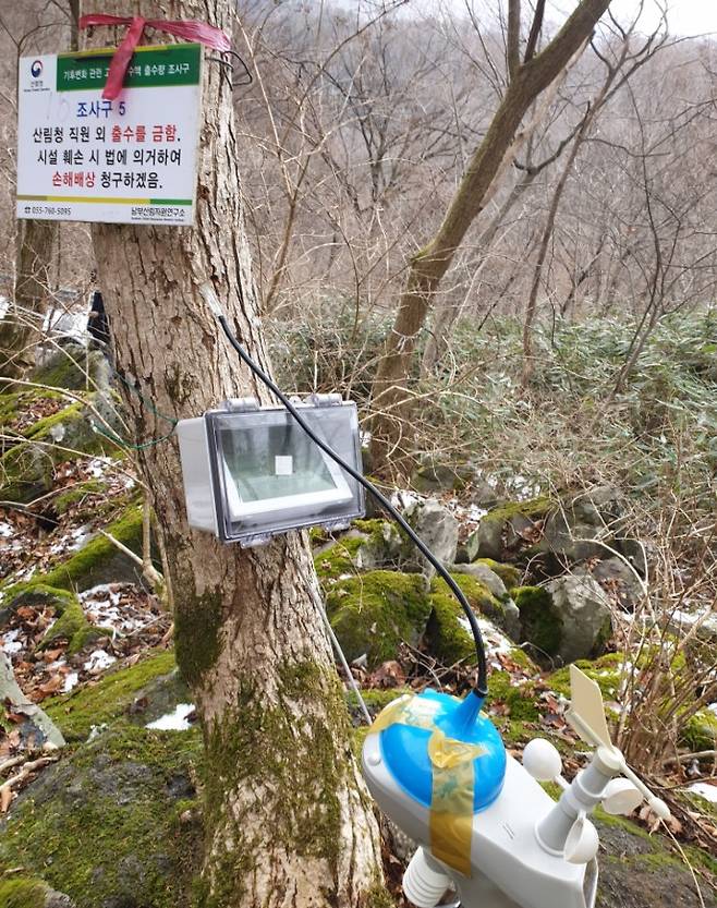 □ 이에 국립산림과학원 산림바이오소재연구소는 기후변화에 의한 고로쇠 수액의 영향·취약성 평가를 위해 2015년부터의 출수량, 대기 온·습도, 토양 온·습도 등의 데이터를 분석하여 출수량과 기상인자와의 상관관계를 밝히는 연구를 진행하고 있다.