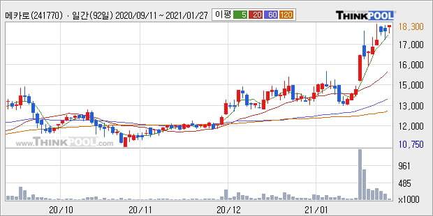 '메카로' 52주 신고가 경신, 단기·중기 이평선 정배열로 상승세