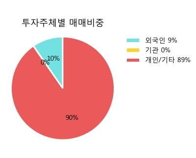 ◆ 주체별 매매동향- 개인의 거래비중 크게 높음, 거래비중 89.3% (최근한달)지난 한달을 기준으로 보면 외국인이 3.2만주를 순매수했고, 기관도 3,228주를 순매수했다.