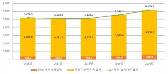 지난해 한국예탁결제원을 통한 채권 결제대금이 6169조2000억원으로 전년 대비 11.2% 증가했다.