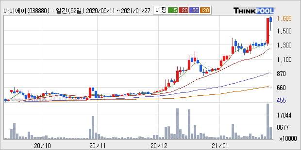 '아이에이' 52주 신고가 경신, 단기·중기 이평선 정배열로 상승세