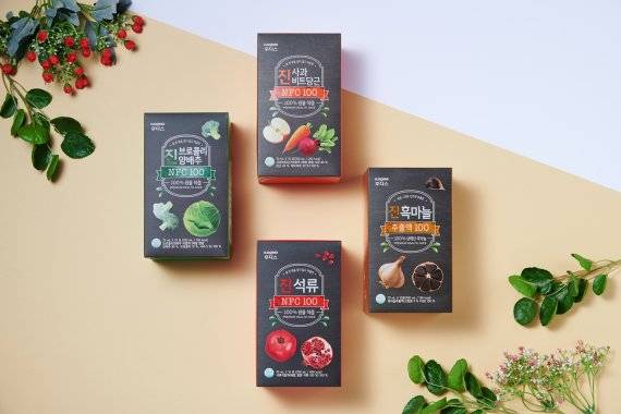 '후디스 진 건강즙'은 신선하고 안전한 원물을 철저하게 선별해 첨가물 없이 100% 착즙한 제품이다. △양배추와 브로콜리 △석류 △흑마늘 △사과비트당근 등 4종으로 구성됐다. 향료, 감미료 없이 원물 그대로 진하게 100% 착즙했으며 HACCP 인증까지 받았다. 온라인을 중심으로 후디스몰, 하이뮨몰 등에서 만나볼 수 있다.