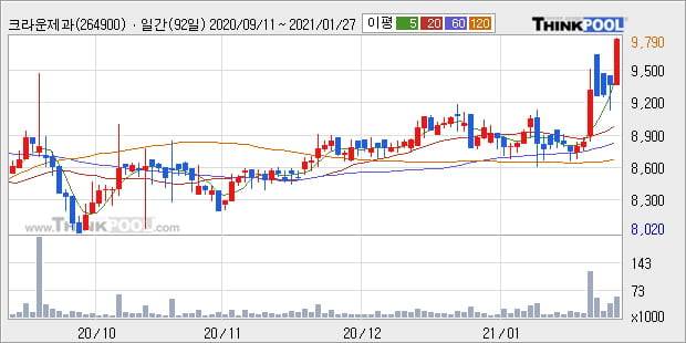 '크라운제과' 52주 신고가 경신, 단기·중기 이평선 정배열로 상승세