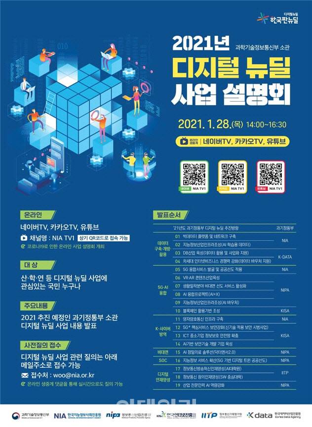 과학기술정보통신부(과기정통부)는 오는 28일 2021년도 디지털 뉴딜 통합설명회를 개최한다고 27일 밝혔다.