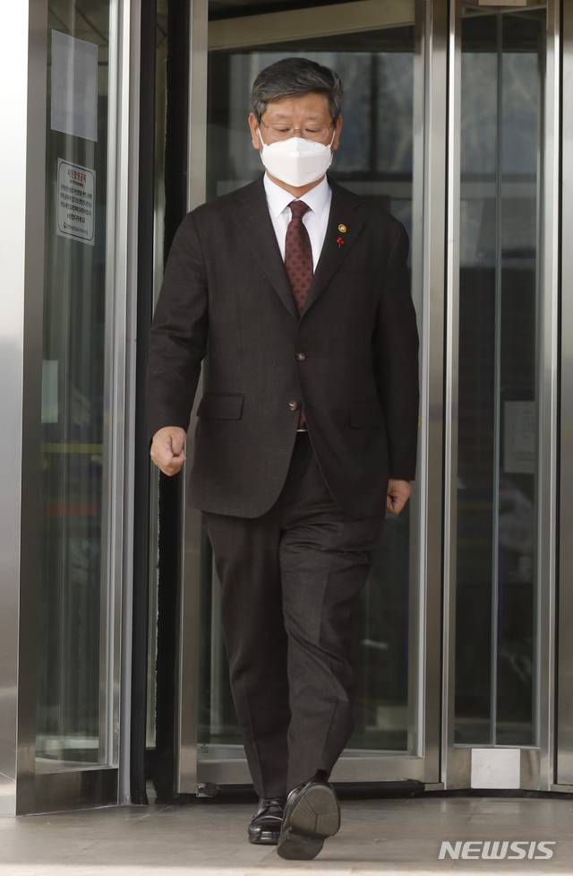 [과천=뉴시스]고승민 기자 = 이용구 법무부 차관이 27일 정부과천청사 법무부를 나서고 있다. 2021.01.27. kkssmm99@newsis.com