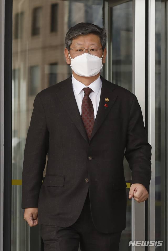 [과천=뉴시스]고승민 기자 = 이용구 법무부 차관이 27일 정부과천청사 법무부를 나서고 있다. 2021.01.27. kkssmm99@newsis.com