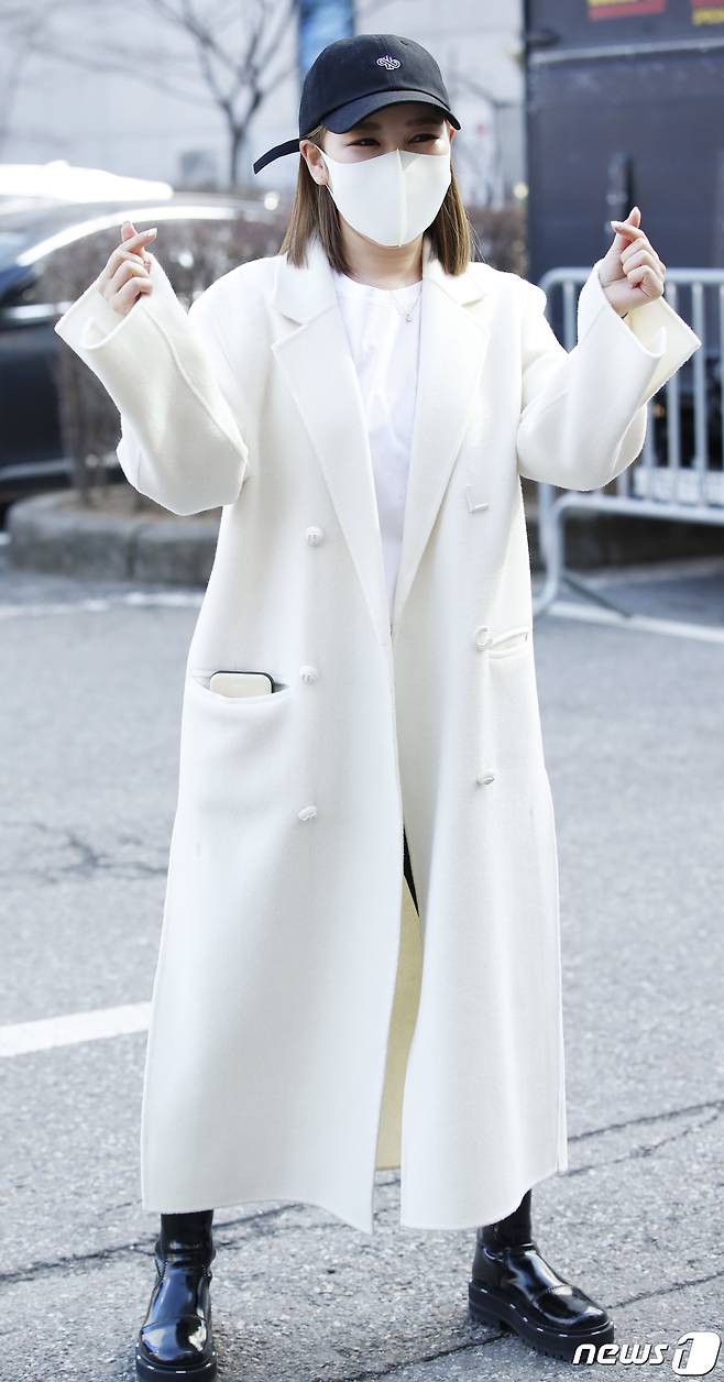 (서울=뉴스1) 권현진 기자 = 가수 송가인이 27일 서울 영등포구 여의도 KBS에서 열리는 KBS 2TV '트롯 전국체전' 촬영 차 방송국으로 들어서며 인사를 하고 있다. 2021.1.27/뉴스1