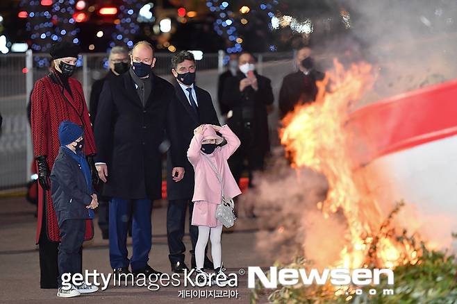 모나코의 알버트 2세 국왕, 샤를린 왕비, 자크 왕자, 가브리엘라 공주가 1월 26일(현지시간) 모나코에서 열린 생트 데보트 행사에 참석했다.