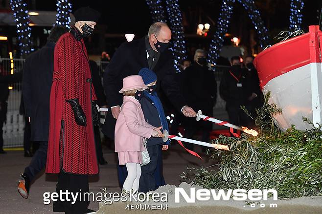 모나코의 알버트 2세 국왕, 샤를린 왕비, 자크 왕자, 가브리엘라 공주가 1월 26일(현지시간) 모나코에서 열린 생트 데보트 행사에 참석했다.