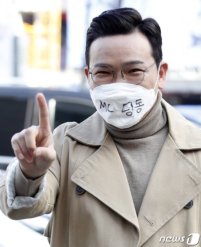 (서울=뉴스1) 권현진 기자 = MC 딩동이 27일 서울 영등포구 여의도 KBS에서 열리는 KBS 2TV '트롯 전국체전' 촬영 차 방송국으로 들어서며 인사를 하고 있다. 2021.1.27/뉴스1