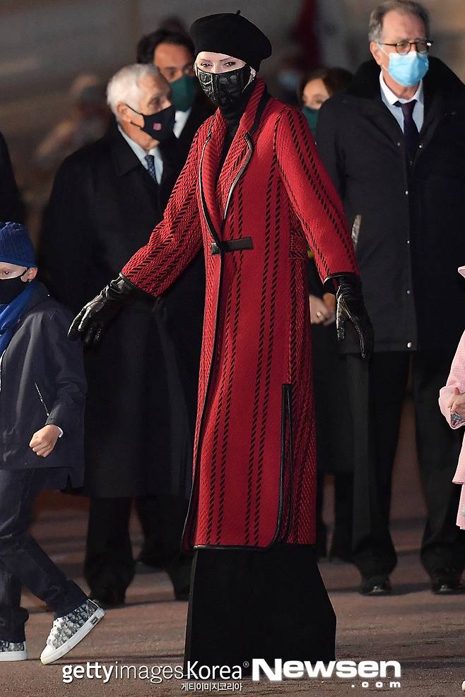 모나코 샤를린 왕비, 스타일리시한 레드 롱코트 패션[포토엔HD]