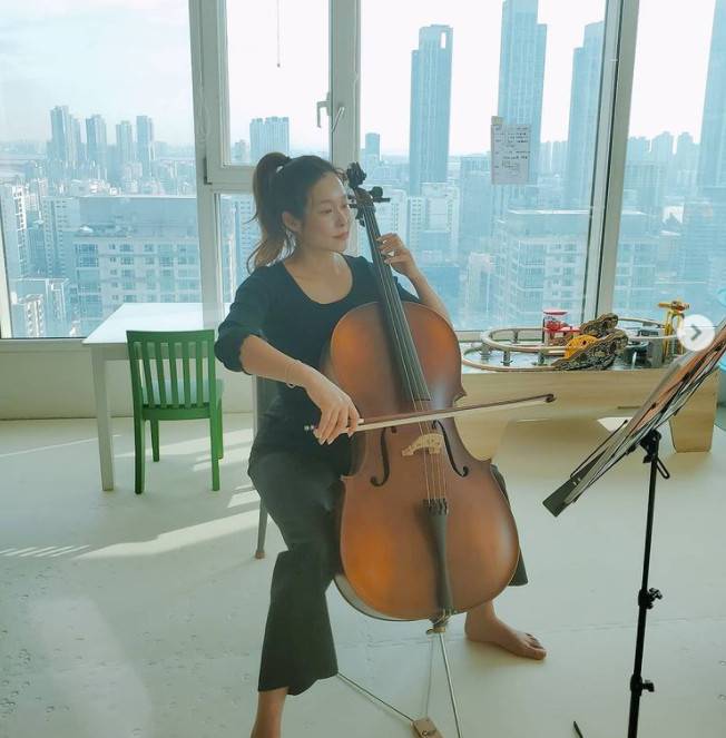 현영, 으리으리한 시티뷰 거실서 첼로 연주 '사모님 느낌' [SNS★컷]