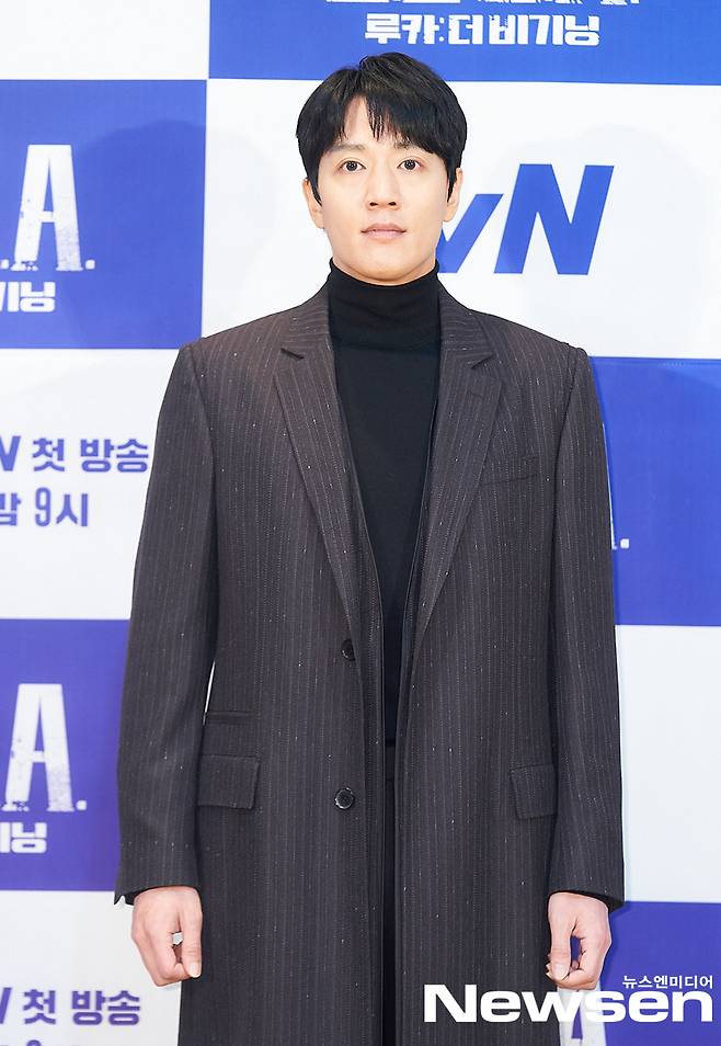 배우 김래원이 1월 27일 온라인으로 진행된 tvN 새 월화드라마 '루카:더 비기닝' 제작발표회에 앞서 포즈를 취하고 있다.