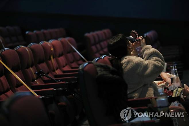 (서울=연합뉴스) 박동주 기자 = 27일 오후 휴관 중인 서울 명보아트시네마에서 명보아트홀 소속 공연예술인이 온라인 콘텐츠 제작을 위해 화장을 고치고 있다. 지난해 신종 코로나바이러스 감염증(코로나19) 확산 여파로 영화 상영관의 폐업이 2008년 미국발 금융위기 이후 12년 만에 가장 많았다. 수익형부동산 연구개발기업 상가정보연구소는 행정안전부 통계를 인용해 작년 전국 영화관 폐업이 81곳으로 집계됐다고 밝혔다. 이는 2019년 폐업(43곳) 대비 약 2배로 증가한 것이자, 미국발 금융위기가 터진 2008년(88곳) 이후 12년 만에 최다 기록이다. 2021.1.27
