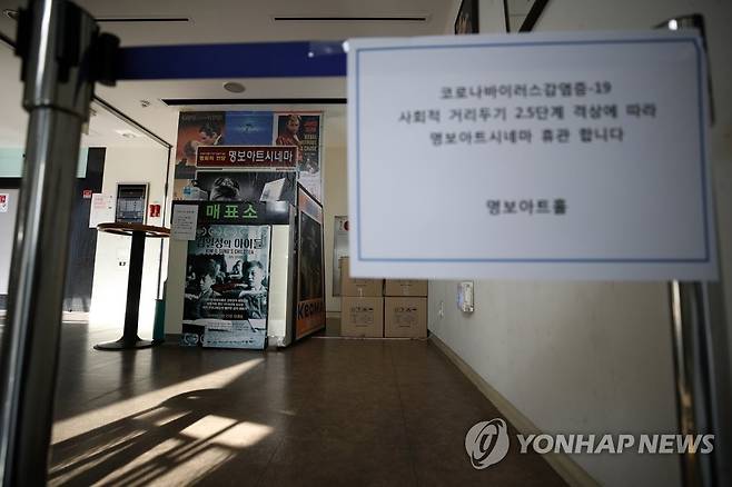 (서울=연합뉴스) 박동주 기자 = 27일 오후 휴관중인 서울 명보아트시네마. 지난해 신종 코로나바이러스 감염증(코로나19) 확산 여파로 영화 상영관의 폐업이 2008년 미국발 금융위기 이후 12년 만에 가장 많았다. 수익형부동산 연구개발기업 상가정보연구소는 행정안전부 통계를 인용해 작년 전국 영화관 폐업이 81곳으로 집계됐다고 밝혔다. 이는 2019년 폐업(43곳) 대비 약 2배로 증가한 것이자, 미국발 금융위기가 터진 2008년(88곳) 이후 12년 만에 최다 기록이다. 2021.1.27