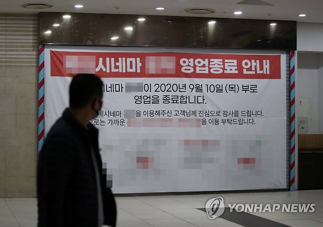 (서울=연합뉴스) 박동주 기자 = 지난해 신종 코로나바이러스 감염증(코로나19) 확산 여파로 영화 상영관의 폐업이 2008년 미국발 금융위기 이후 12년 만에 가장 많았다. 수익형부동산 연구개발기업 상가정보연구소는 행정안전부 통계를 인용해 작년 전국 영화관 폐업이 81곳으로 집계됐다고 27일 밝혔다. 이는 2019년 폐업(43곳) 대비 약 2배로 증가한 것이자, 미국발 금융위기가 터진 2008년(88곳) 이후 12년 만에 최다 기록이다. 사진은 지난해 폐관한 서울의 한 영화관 앞에 폐관 관련 안내문이 붙어 있는 모습. 2021.1.27