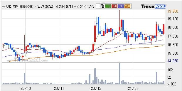 '국보디자인' 52주 신고가 경신, 단기·중기 이평선 정배열로 상승세
