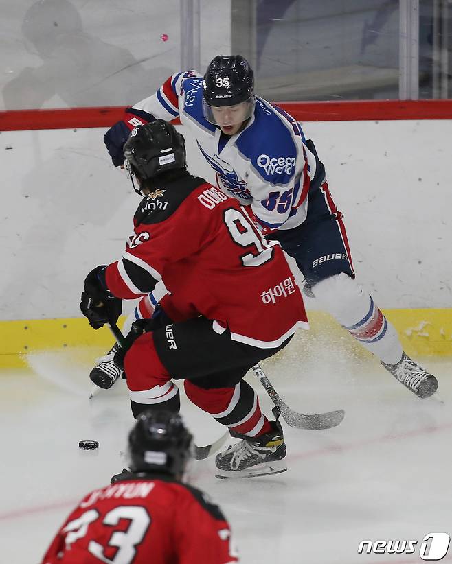 1946년 시작돼 국내 아이스하키 최고 역사를 자랑하는 이번 대회는 신종 코로나 바이러스감염증(코로나19) 사태로 1개월 여 연기와 훈련을 이어가지 못한 대학팀들이 참석하지 못해 국내 실업 3개 팀(안양 한라, 대명 킬러웨일즈, 하이원)의 맞대결로 우승 팀을 가린다. 2021.1.27/뉴스1