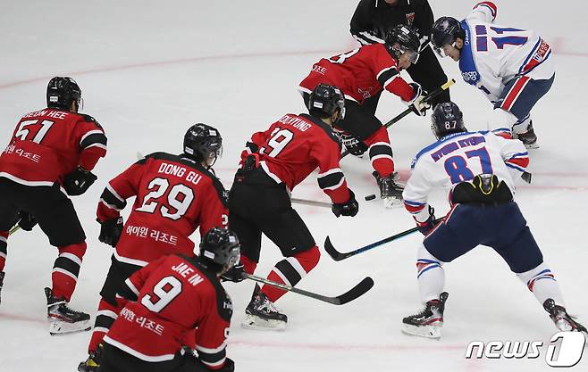 1946년 시작돼 국내 아이스하키 최고 역사를 자랑하는 이번 대회는 신종 코로나 바이러스감염증(코로나19) 사태로 1개월 여 연기와 훈련을 이어가지 못한 대학팀들이 참석하지 못해 국내 실업 3개 팀(안양 한라, 대명 킬러웨일즈, 하이원)의 맞대결로 우승 팀을 가린다. 2021.1.27/뉴스1