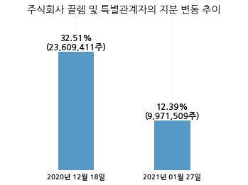 GV은 주식회사 끌렘 및 특별관계자의 지분율이 32.51%에서 12.39%로 변동했다고 27일 공시했다.