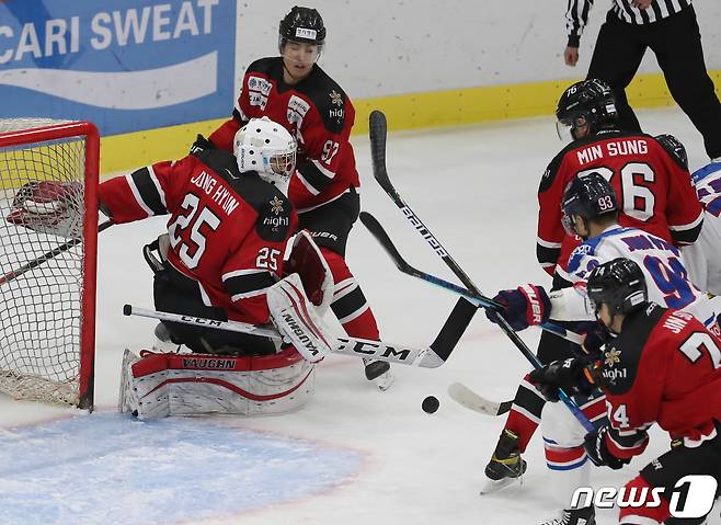 1946년 시작돼 국내 아이스하키 최고 역사를 자랑하는 이번 대회는 신종 코로나 바이러스감염증(코로나19) 사태로 1개월 여 연기와 훈련을 이어가지 못한 대학팀들이 참석하지 못해 국내 실업 3개 팀(안양 한라, 대명 킬러웨일즈, 하이원)의 맞대결로 우승 팀을 가린다. 2021.1.27/뉴스1