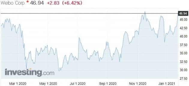 중국의 소셜 네트워크 서비스(SNS) 업체인 웨이보도 바이두와 함께 ‘놀라운 수익창출력을 지닌 기업’으로 거론됐다. UBS는 올해 웨이보의 광고 수익이 지난해보다 8% 증가할 것으로 전망했다.