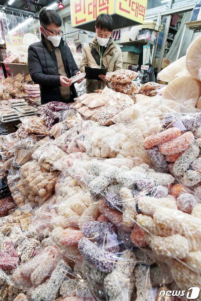 (수원=뉴스1) 조태형 기자 = 민족 대명절 설을 보름여 앞둔 27일 오후 경기도 수원시 화서시장에서 국립농산물품질관리원 수원사무소 관계자들이 원산지 특별점검을 하고 있다. 2021.1.27/뉴스1