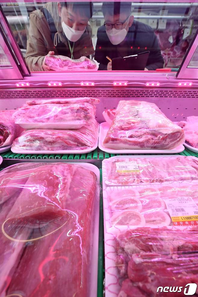 (수원=뉴스1) 조태형 기자 = 민족 대명절 설을 보름여 앞둔 27일 오후 경기도 수원시 화서시장에서 국립농산물품질관리원 수원사무소 관계자들이 원산지 특별점검을 하고 있다. 2021.1.27/뉴스1