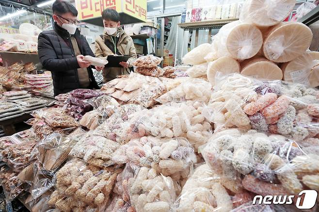 (수원=뉴스1) 조태형 기자 = 민족 대명절 설을 보름여 앞둔 27일 오후 경기도 수원시 화서시장에서 국립농산물품질관리원 수원사무소 관계자들이 원산지 특별점검을 하고 있다. 2021.1.27/뉴스1
