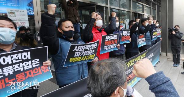 택배사 사회적합의 파기..택배노동자 총파업 선언 [경향포토]