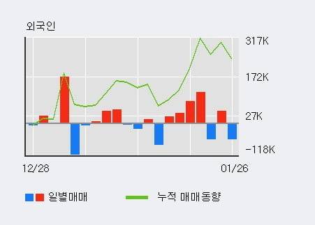 지난 한달을 기준으로 보면 외국인이 24.0만주를 순매수했지만, 개인은 25.4만주를 순매도했다. 기관의 순매수량에는 변동이 없다. 같은 기간 거래 비중은 개인이 85.7% 로 가장 높고, 외국인은 13.0%로 그 뒤를 이었다. 기관은 거래에 거의 참여하지 않은 것으로 보인다.