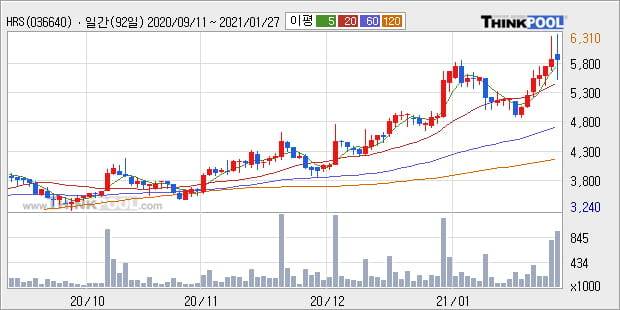 'HRS' 52주 신고가 경신, 현재 주가 숨고르기, 단기·중기 이평선 정배열로 상승세