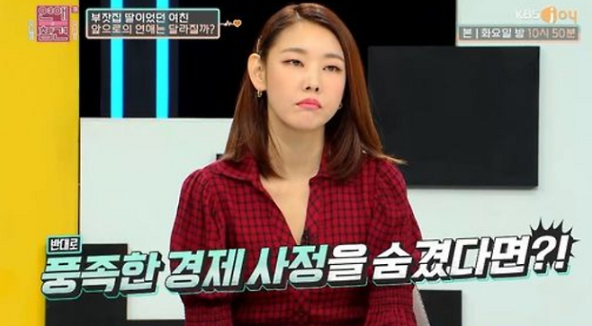 자신과 비슷한 처지인 줄 알았던 여자친구가 부잣집 딸이었다는 사실을 알게 된 고민남의 고민이 방송됐다.