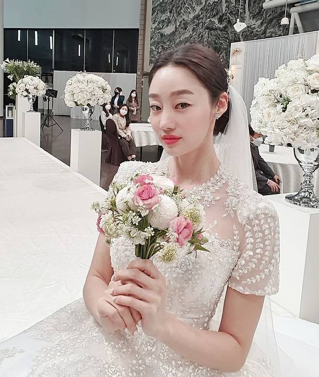공개된 사진에는 화려한 웨딩드레스를 갖춰 입고 꽃다발을 든 채 미소짓는 최여진의 모습이 담겨있다.