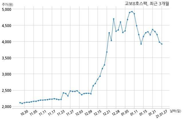 한편, 교보8호스팩은 장 마감 이후 해당 기업공시를 발표했으며 오늘 종가가 3,925원, 거래량은 124,931주로, 직전 거래일 대비 55원(-1.38%) 하락했다.