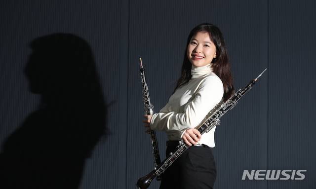 [서울=뉴시스]조수정 기자 = 코리안심포니오케스트라 2021 신년음악회 '다시 꾸는 꿈' 공연을 앞둔 오보이스트 한이제가 26일 서울 서초구 국립예술단체공연연습장에서 뉴시스와 인터뷰 하고 있다. 2021.01.27. chocrystal@newsis.com