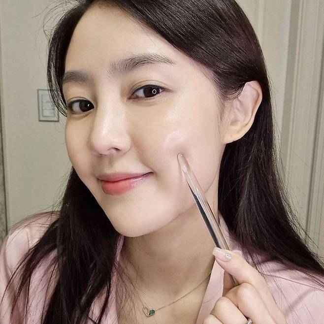 공개된 사진 속 김사은은 꿀피부를 자랑하며 제품을 테스트중이다.