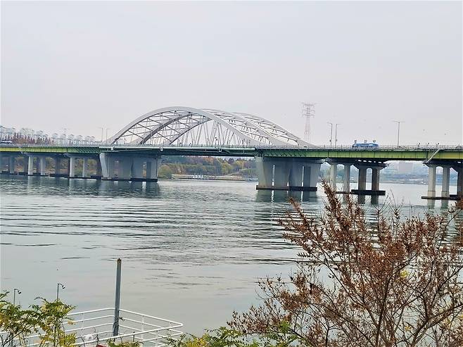 | ▲ 양화대교 아치교 선유도에서 합정동 방향으로 놓인 양화대교 로제아치교다. 다리 미관과 한강에서 유람선을 원활하게 운용하기 위한 조치로 생각된다. 하지만 유람선이 한강에서 어떤 의미인지 개인적으론 여전히 의문이다. |