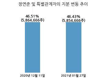 선창산업은 정연준 및 특별관계자의 지분율이 46.51%에서 46.43%로 변동했다고 27일 공시했다.