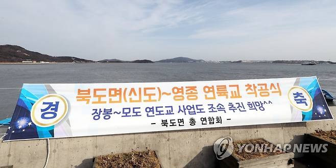 (인천=연합뉴스) 윤태현 기자 = 서해 남북 평화도로의 1단계 구간이자 영종도와 신도를 잇는 '영종∼신도 평화도로' 공사 착공일인 27일 오후 인천시 옹진군 북도면 신도 선착장에서 평화도로 예정지가 보인다. 2021.1.27