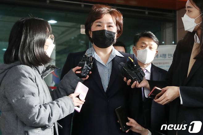 (서울=뉴스1) 민경석 기자 = 제21대 국회의원 총선거 당시 재산을 축소 신고한 혐의로 기소된 조수진 국민의힘 의원이 27일 오후 서울 마포구 서울서부지방법원에서 열린 공직선거법위반 혐의 관련 1심 선고 공판을 마친 뒤 법원을 나서고 있다.