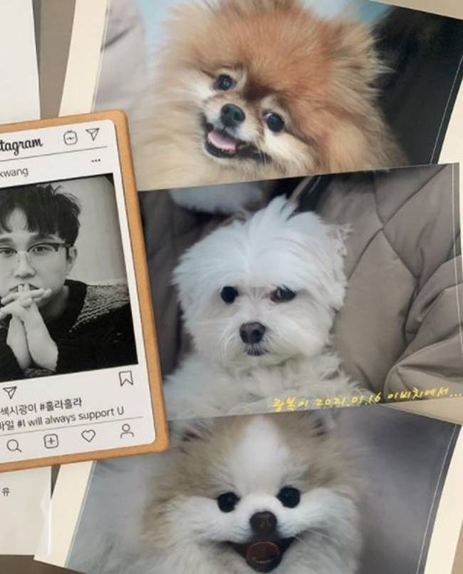 여기에는 박성광과 반려견 세 마리의 사진 출력물이 담겼다. 흑백사진으로 고즈넉한 분위기를 더하는 박성광의 모습이 눈길을 끈다.