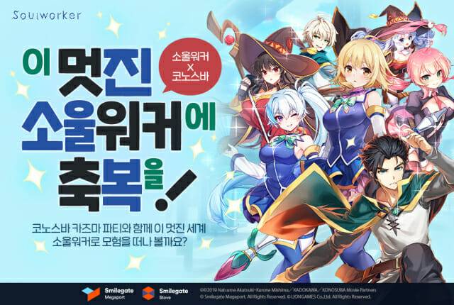 오늘부터 다음 달 25일까지 약 한달 간 진행되는 이번 콜라보레이션 이벤트에서는 이멋세의 주요 등장인물인 '카즈마', '메구밍', '아쿠아', '융융'을 모티브로 한 특별한 외형 꾸미기 아이템을 선보이며 이멋세의 스토리를 소울워커에 녹여낸 웹 이벤트와 다양한 보상을 제공하는 게임 내 이벤트도 진행된다.