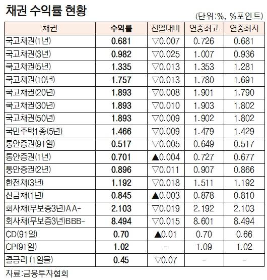 [표]채권 수익률 현황(1월 27일)