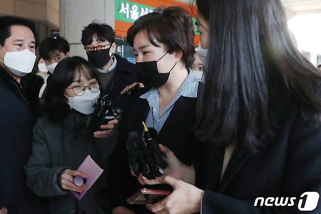 (서울=뉴스1) 민경석 기자 = 제21대 국회의원 총선거 당시 재산을 축소 신고한 혐의로 기소된 조수진 국민의힘 의원이 27일 오후 서울 마포구 서울서부지방법원에서 열린 공직선거법위반 혐의 관련 1심 선고 공판을 마친 뒤 법원을 나서고 있다.