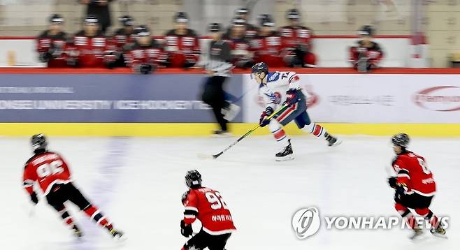 (서울=연합뉴스) 류영석 기자 = 27일 오후 서울 목동아이스링크에서 열린 제75회 전국 종합아이스하키선수권대회 대명 킬러웨일즈와 하이원의 경기.