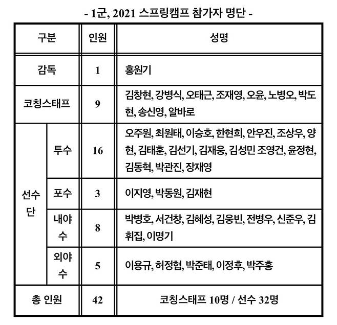 한편 퓨처스팀 선수단도 고척스카이돔에서 2021시즌을 준비한다. 퓨처스팀이 오전에 훈련을 하고, 1군은 오후 2시부터 훈련을 시작한다.
