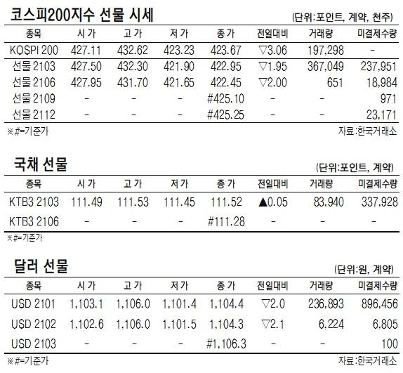 - [표]코스피200지수 국채 달러 선물 시세(1월 26일)